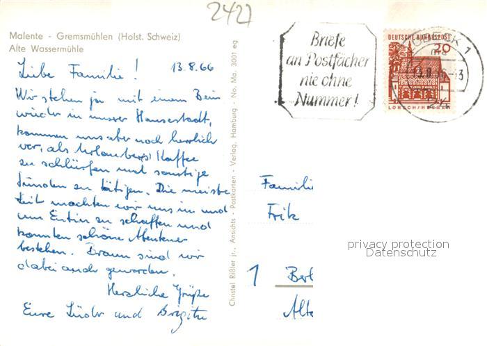 73566568 alte Postkarte Malente-Gremsmuehlen Alte Wassermuehle postalisch gelaufen Erhaltung siehe scans [WerneD78] KatCode: 11110001055028