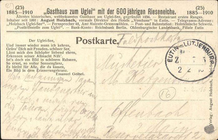 71489393 alte Postkarte Malente-Gremsmuehlen Am Uglei See Feldpost postalisch gelaufen Erhaltung siehe scans KatCode: 11110001055028