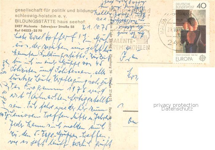 73730580 alte Postkarte Malente-Gremsmuehlen Bildungsstaette Haus Seehof Sauna postalisch gelaufen Erhaltung siehe scans [LiesaD40] KatCode: 11110001055028