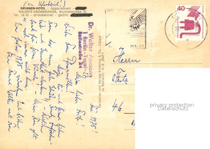 73045889 alte Postkarte Malente-Gremsmuehlen Brunnen Hotel Appartements postalisch gelaufen Erhaltung siehe scans [WerneD78] KatCode: 11110001055028