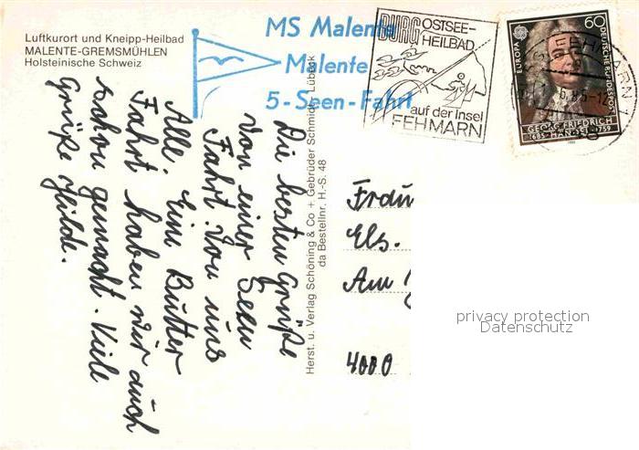 72744992 alte Postkarte Malente-Gremsmuehlen Dieksee Promenade Kirche Windmuehle Bootsanleger Luftkurort Kneippheilbad Holsteinische Schweiz postalisch gelaufen Erhaltung siehe scans [FriedD77] KatCode: 11110001055028