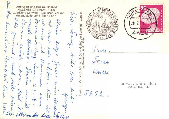 72743975 alte Postkarte Malente-Gremsmuehlen Diekseebucht Anleger 5 Seen Fahrt Hotel Hochhaus Holsteinische Schweiz postalisch gelaufen Erhaltung siehe scans [FriedD77] KatCode: 11110001055028