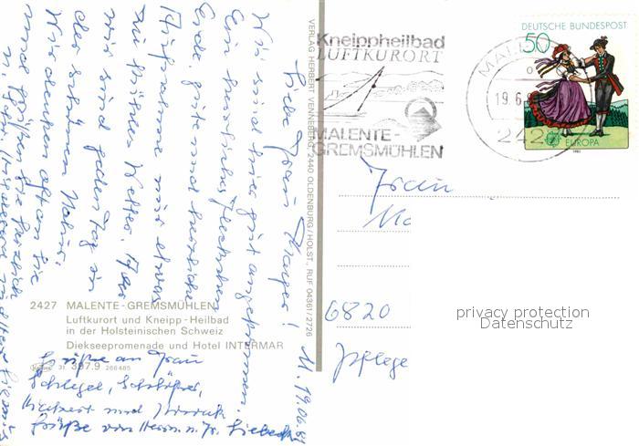 72836464 alte Postkarte Malente-Gremsmuehlen Diekseepromenade Hotel Intermar postalisch gelaufen Erhaltung siehe scans [PaolaD17] KatCode: 11110001055028