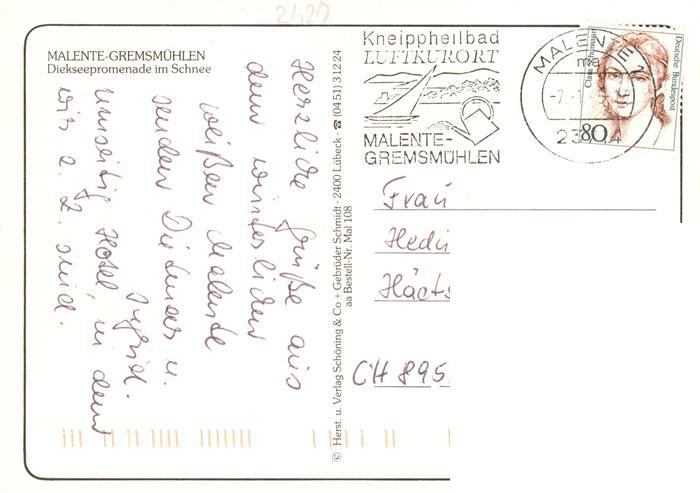 73940346 alte Postkarte Malente-Gremsmuehlen Diekseepromenade im Schnee postalisch gelaufen Erhaltung siehe scans [FriedD77] KatCode: 11110001055028
