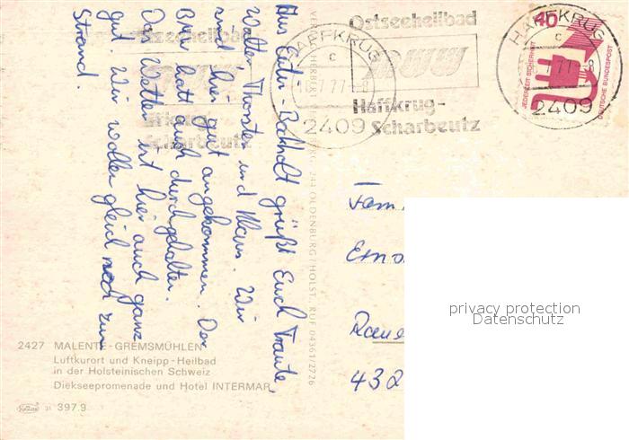 72771131 alte Postkarte Malente-Gremsmuehlen Diekseepromenade und Hotel Intermar postalisch gelaufen Erhaltung siehe scans [WerneD78] KatCode: 11110001055028