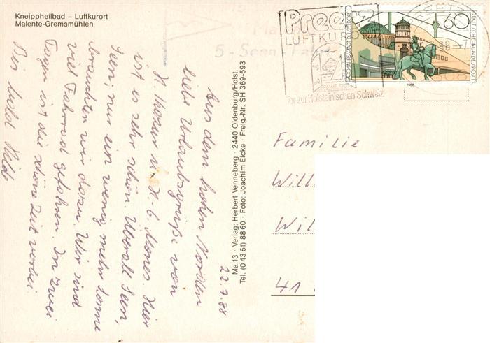 73877875 alte Postkarte Malente-Gremsmuehlen Fliegeraufnahme postalisch gelaufen Erhaltung siehe scans [WerneD78] KatCode: 11110001055028