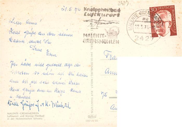 73940335 alte Postkarte Malente-Gremsmuehlen Fliegeraufnahme postalisch gelaufen Erhaltung siehe scans [FriedD77] KatCode: 11110001055028