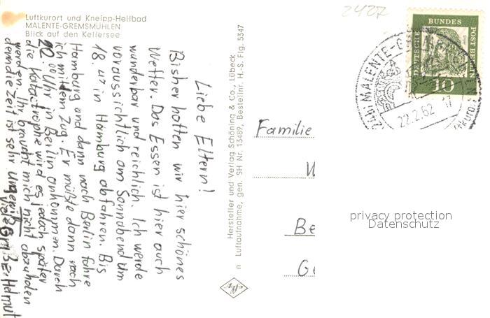 43490188 alte Postkarte Malente-Gremsmuehlen Fliegeraufnahme Kellersee postalisch gelaufen Erhaltung siehe scans [KathaD81] KatCode: 11110001055028