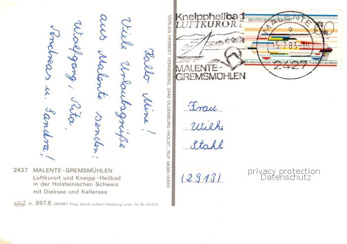 73018967 alte Postkarte Malente-Gremsmuehlen Fliegeraufnahme mit Dieksee und Kellersee postalisch gelaufen Erhaltung siehe scans [WerneD78] KatCode: 11110001055028