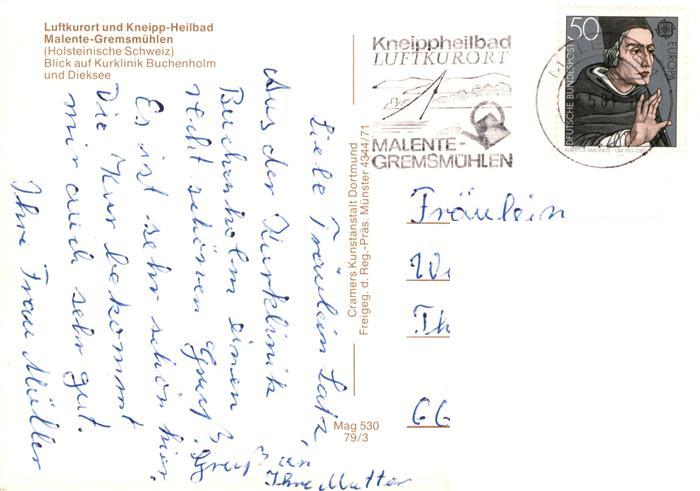 73892861 alte Postkarte Malente-Gremsmuehlen Fliegeraufnahme mit Kurklinik Buchenholm und Dieksee postalisch gelaufen Erhaltung siehe scans [WerneD78] KatCode: 11110001055028