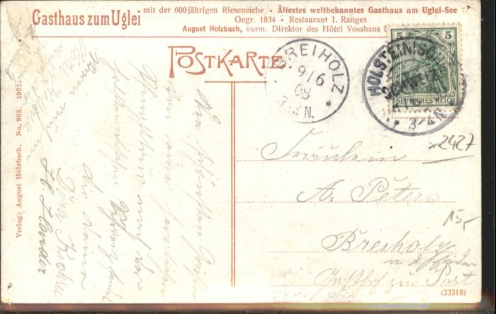 40852453 Malente-Gremsmuehlen Gasthaus zum Uglei Uglei-See postalisch gelaufen Alte Ansichtskarte Postkarte alte Postkarte Katcode 11110001055028