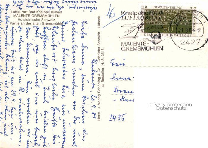 72667674 alte Postkarte Malente-Gremsmuehlen Gremsmuehle postalisch gelaufen Erhaltung siehe scans [AndreD76] KatCode: 11110001055028