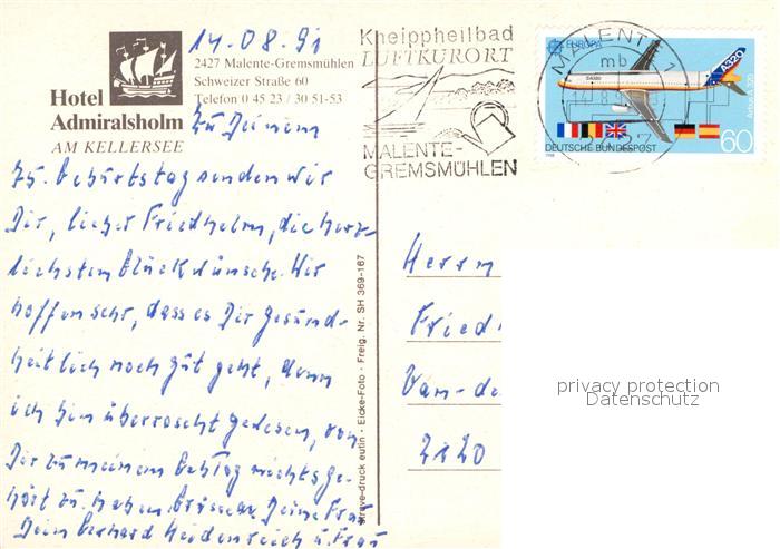 72938199 alte Postkarte Malente-Gremsmuehlen Hotel Admiralsholm Fliegeraufnahme postalisch gelaufen Erhaltung siehe scans [WerneD78] KatCode: 11110001055028