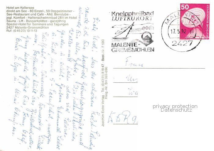 72669062 alte Postkarte Malente-Gremsmuehlen Hotel am Kellersee postalisch gelaufen Erhaltung siehe scans [LiesaD40] KatCode: 11110001055028