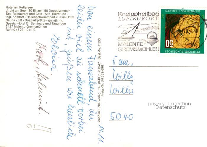 72991228 alte Postkarte Malente-Gremsmuehlen Hotel am Kellersee Fliegeraufnahme postalisch gelaufen Erhaltung siehe scans [WerneD78] KatCode: 11110001055028