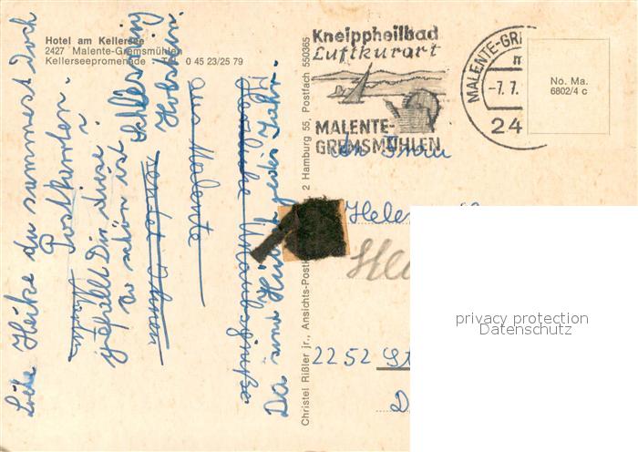 73661818 alte Postkarte Malente-Gremsmuehlen Hotel am Kellersee Restaurant Cafe Altdeutsche Bierstube postalisch gelaufen Erhaltung siehe scans [FriedD77] KatCode: 11110001055028