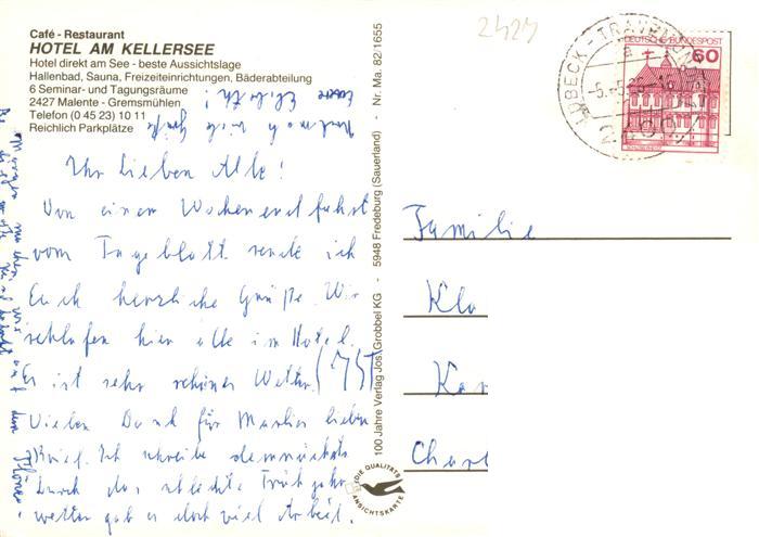 73940347 alte Postkarte Malente-Gremsmuehlen Hotel am Kellersee postalisch gelaufen Erhaltung siehe scans [FriedD77] KatCode: 11110001055028