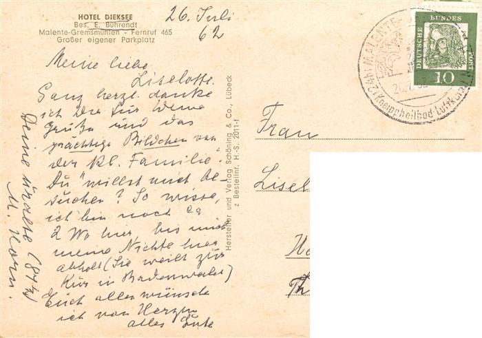 73896271 alte Postkarte Malente-Gremsmuehlen Hotel Dieksee postalisch gelaufen Erhaltung siehe scans [WerneD78] KatCode: 11110001055028