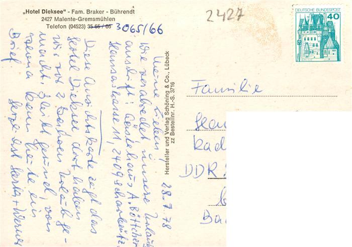 73940342 alte Postkarte Malente-Gremsmuehlen Hotel Dieksee postalisch gelaufen Erhaltung siehe scans [FriedD77] KatCode: 11110001055028
