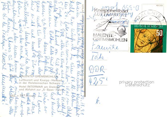 72987590 alte Postkarte Malente-Gremsmuehlen Hotel Intermar am Dieksee postalisch gelaufen Erhaltung siehe scans [LiesaD40] KatCode: 11110001055028