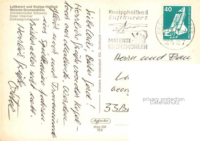 72819676 alte Postkarte Malente-Gremsmuehlen Hotel Intermar Diekseepromenade postalisch gelaufen Erhaltung siehe scans [NatalD47] KatCode: 11110001055028