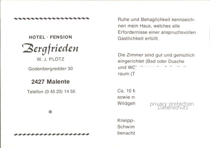 72577616 Malente-Gremsmuehlen Hotel Pension Bergfrieden postalisch nicht gelaufen Werbekarte (keine Postkarte) Erhaltung siehe scans [FriedD77] KatCode: 11110001055028