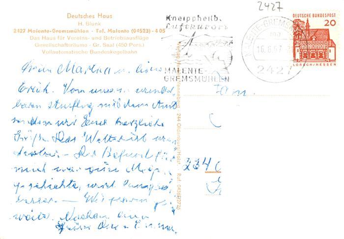 73878583 alte Postkarte Malente-Gremsmuehlen Hotel Restaurant Deutsches Haus postalisch gelaufen Erhaltung siehe scans [FriedD77] KatCode: 11110001055028