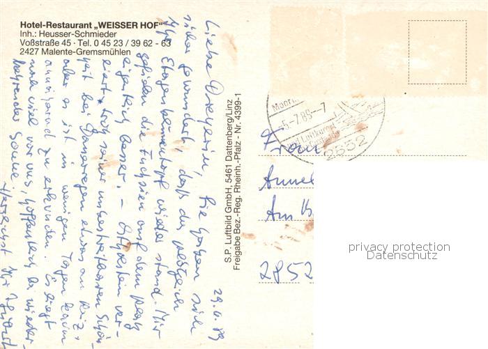 73761907 alte Postkarte Malente-Gremsmuehlen Hotel Restaurant Weisser Hof Fliegeraufnahme postalisch gelaufen Erhaltung siehe scans [FriedD77] KatCode: 11110001055028
