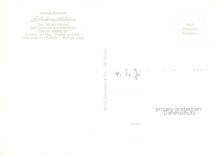 73608953 Malente-Gremsmuehlen Kneipp Kurheim Godenbergschloesschen postalisch nicht gelaufen Erhaltung siehe scans [WerneD78] KatCode: 11110001055028