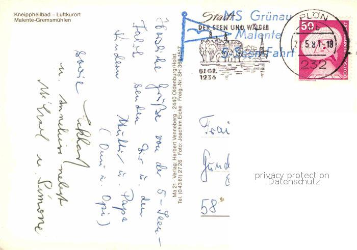 72930610 alte Postkarte Malente-Gremsmuehlen Kneippheilbad Luftkurort Holsteinische Schweiz Fliegeraufnahme postalisch gelaufen Erhaltung siehe scans [FriedD77] KatCode: 11110001055028