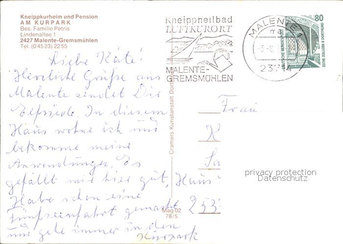 72299256 alte Postkarte Malente-Gremsmuehlen Kneippkurheim Am Kurpark postalisch gelaufen Erhaltung siehe scans KatCode: 11110001055028