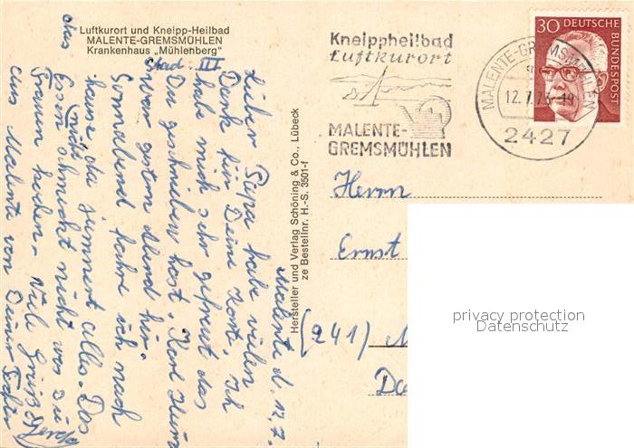 73121197 alte Postkarte Malente-Gremsmuehlen Krankenhaus Muehlenberg postalisch gelaufen Erhaltung siehe scans [LiesaD40] KatCode: 11110001055028