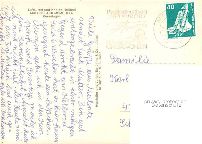 72744961 alte Postkarte Malente-Gremsmuehlen Kuranlagen Luftkurort Kneipp Heilbad Holsteinische Schweiz postalisch gelaufen Erhaltung siehe scans [FriedD77] KatCode: 11110001055028