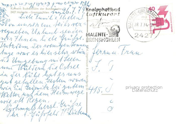 72961175 alte Postkarte Malente-Gremsmuehlen Kurheim Buchenholm der Bundesbahn postalisch gelaufen Erhaltung siehe scans [NatalD47] KatCode: 11110001055028