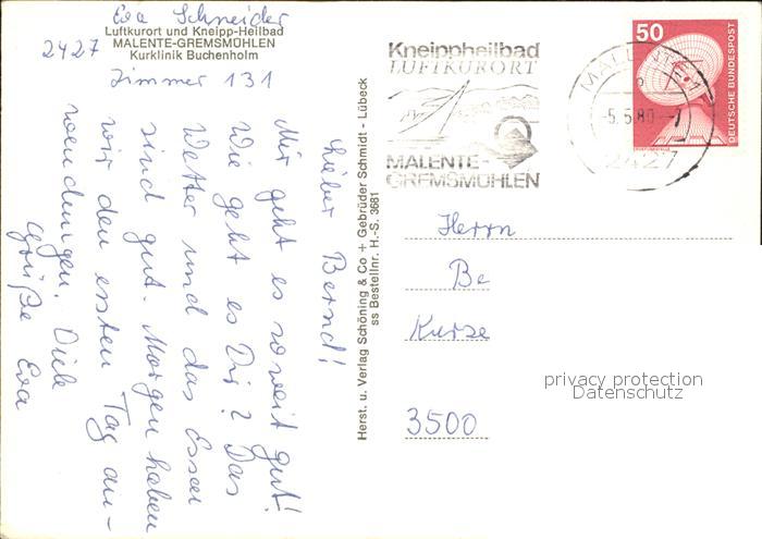 alte Postkarte Malente-Gremsmuehlen Kurklinik Buchenholm postalisch gelaufen Erhaltung siehe scans