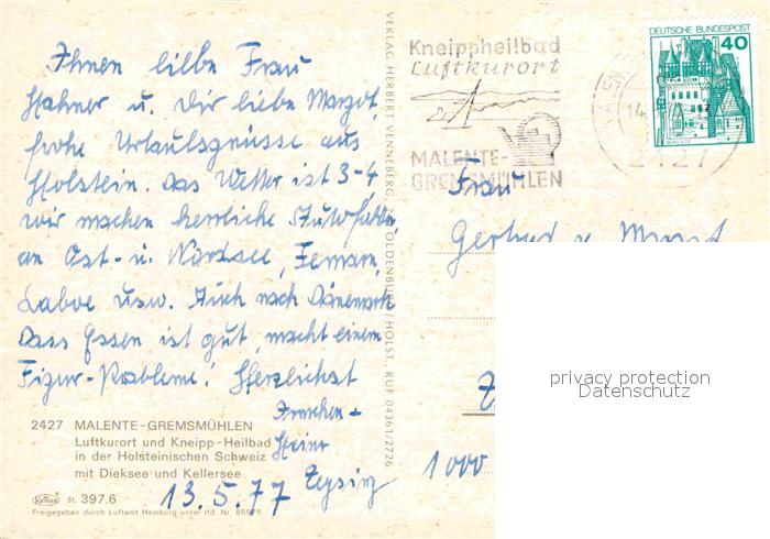 72802792 alte Postkarte Malente-Gremsmuehlen Luftkurort Kneipp Heilbad mit Dieksee und Kellersee Holsteinische Schweiz Fliegeraufnahme postalisch gelaufen Erhaltung siehe scans [FriedD77] KatCode: 11110001055028