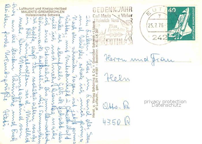 72744989 alte Postkarte Malente-Gremsmuehlen Luftkurort Kneippheilbad Holsteinische Schweiz Fliegeraufnahme postalisch gelaufen Erhaltung siehe scans [FriedD77] KatCode: 11110001055028