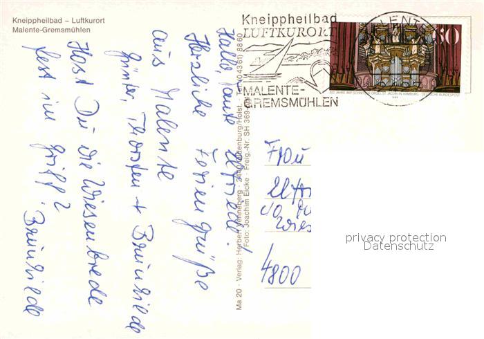 72902615 alte Postkarte Malente-Gremsmuehlen Luftkurort Naturpark Holsteinische Schweiz Fliegeraufnahme postalisch gelaufen Erhaltung siehe scans [FriedD77] KatCode: 11110001055028