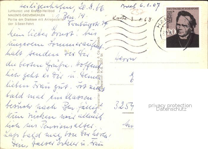 72606190 alte Postkarte Malente-Gremsmuehlen Partie am Dieksee mit Anlegestelle und Personenschiff postalisch gelaufen Erhaltung siehe scans [AndreD76] KatCode: 11110001055028