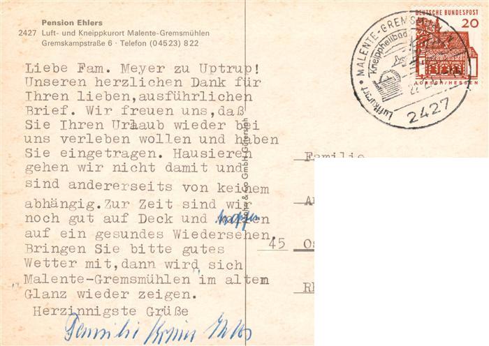 73894044 alte Postkarte Malente-Gremsmuehlen Pension Ehlers Gartenterrasse Gaststube postalisch gelaufen Erhaltung siehe scans [WerneD78] KatCode: 11110001055028