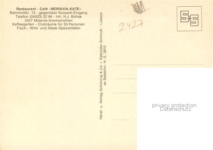 73763952 Malente-Gremsmuehlen Restaurant Moravia Kate Gastraeume Bar postalisch nicht gelaufen Erhaltung siehe scans [FriedD77] KatCode: 11110001055028