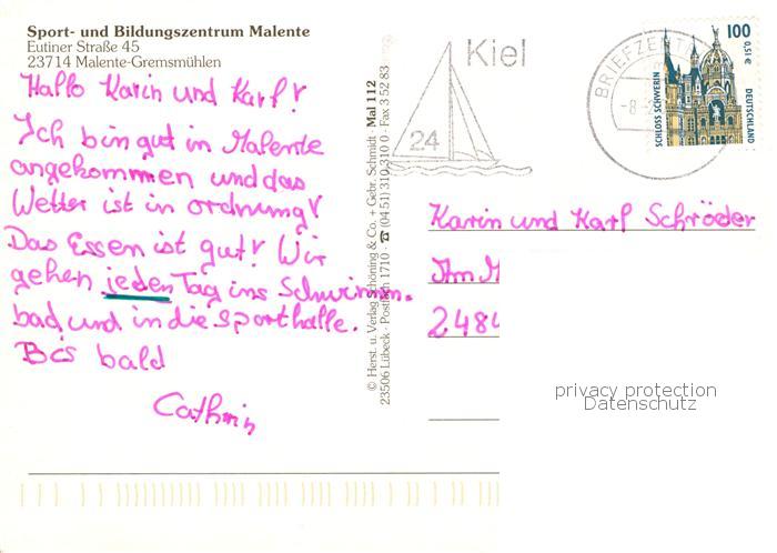 73793475 alte Postkarte Malente-Gremsmuehlen Sport- und Bildungszentrum Landessportverband Schleswig-Holstein postalisch gelaufen Erhaltung siehe scans [FriedD77] KatCode: 11110001055028