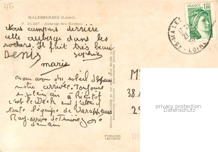 13640273 Malesherbes Auberge des Roches postalisch gelaufen Erhaltung siehe scans [FriedD77] carte postale Frie Katcode 11170045345191