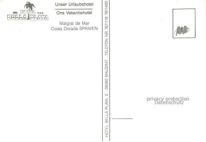 74085048 Malgrat-de-Mar Cataluna ES Hotel Bella Playa postalisch nicht gelaufen Erhaltung siehe scans [WerneD78] KatCode: 11510