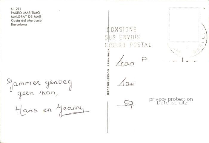 old postcard Malgrat de Mar Costa del Maresme Paseo Maritimo postalisch gelaufen Erhaltung siehe scans