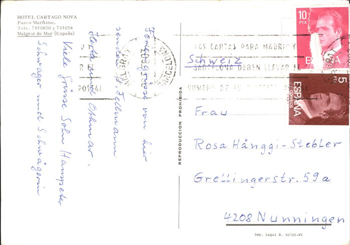 old postcard Malgrat de Mar Hotel Cartago Nova Swimming Pool postalisch gelaufen Erhaltung siehe scans