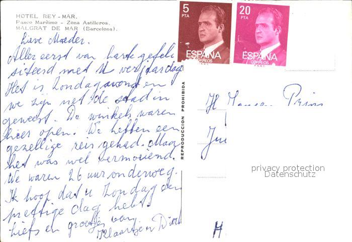 Malgrat de Mar Hotel Rey Mar postalisch nicht gelaufen Erhaltung siehe scans