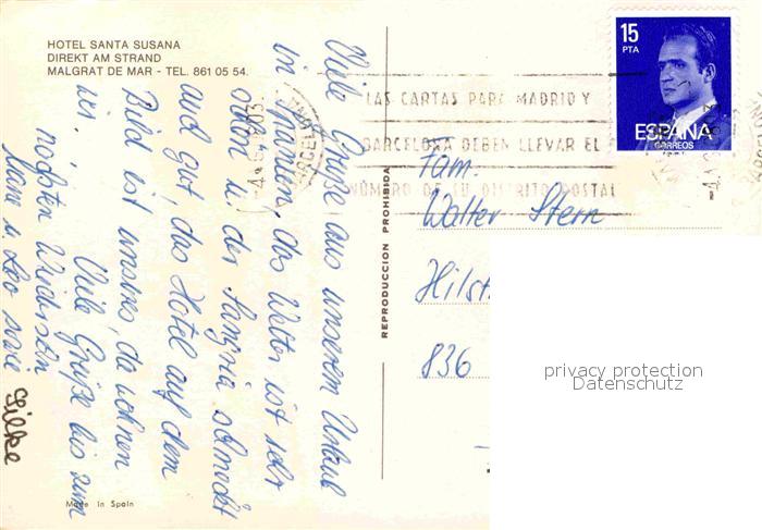 old postcard Malgrat de Mar Hotel Santa Susana Strand postalisch gelaufen Erhaltung siehe scans [FriedD77]