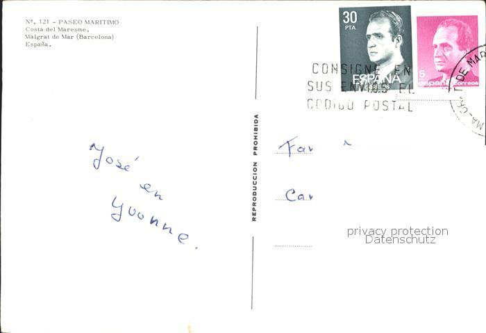 old postcard Malgrat de Mar Paseo Maritimo Costa del Maresme Touristenbahn postalisch gelaufen Erhaltung siehe scans