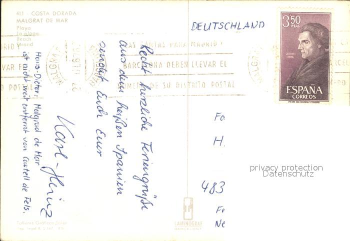 old postcard Malgrat de Mar Playa postalisch gelaufen Erhaltung siehe scans